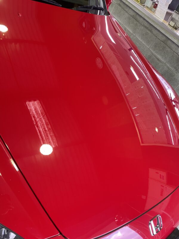お次はボンネットとドアミラー左右が赤色特有の塗装の劣化があったので序に再塗装して欲しいと依頼!
