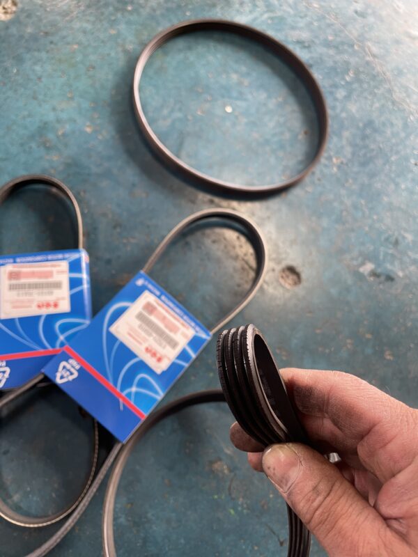 ファンベルトは画像のようにひび割れがありこのまま使用しているとベルトが切れる状態になっていました。
