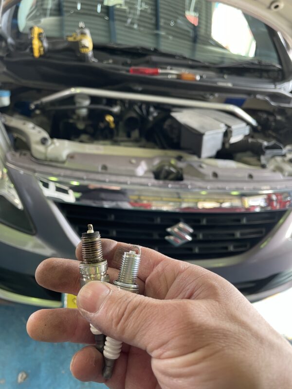 スズキ・セルボがプラグとベルトの交換で入庫しました。